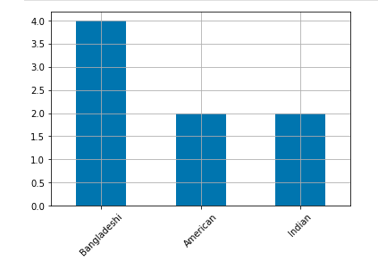 data = ['American','American','Indian','Indian','Bangladeshi','Bangladeshi','Bangladeshi','Bangladeshi']